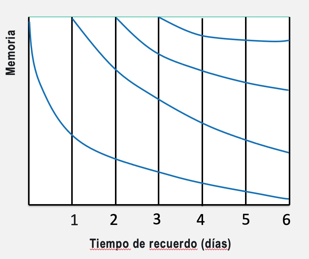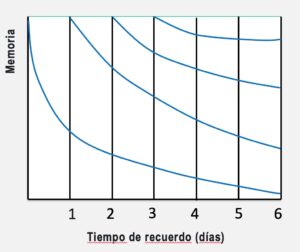 El funcionamiento de la curva del olvido, de Hermann Ebbinghaus.